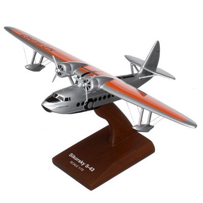 A museum quality desktop S-43 Pan American 1/72 Scale Model Aircraft. This model will display beautifully in your home or office and makes a wonderful conversation piece.